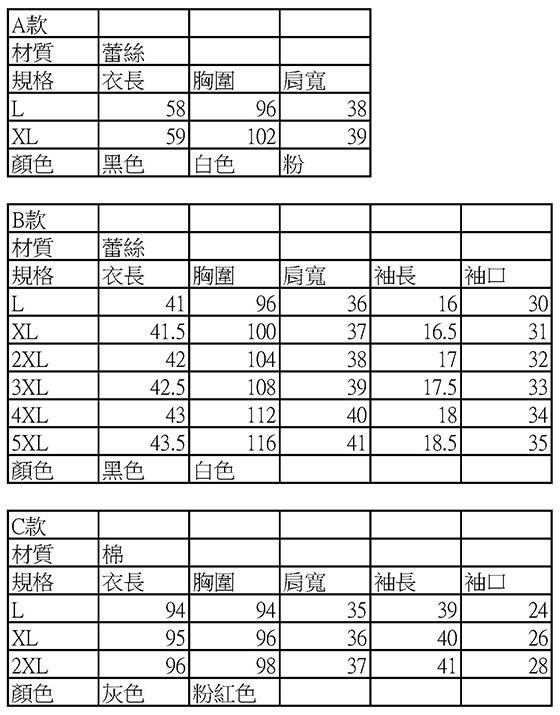 尺碼:L/XL/2XL/3XL/4XL/5XL
