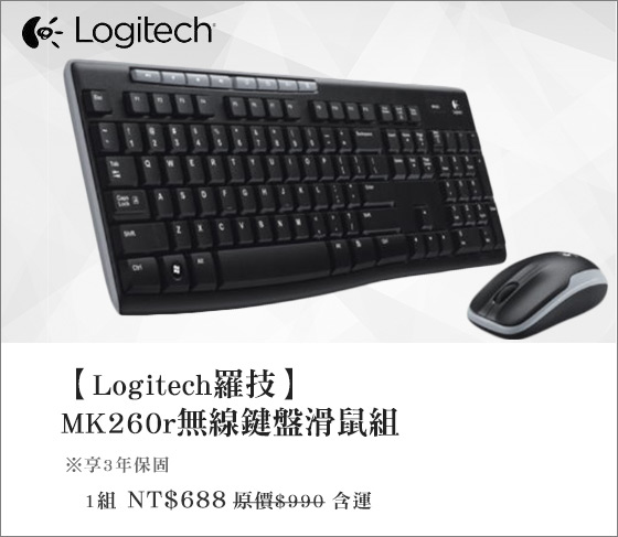 商品訊息簡述: 只要688元即可享有【Logitech羅技】原價990元MK260r無線鍵盤滑鼠組1組,享3年保固。